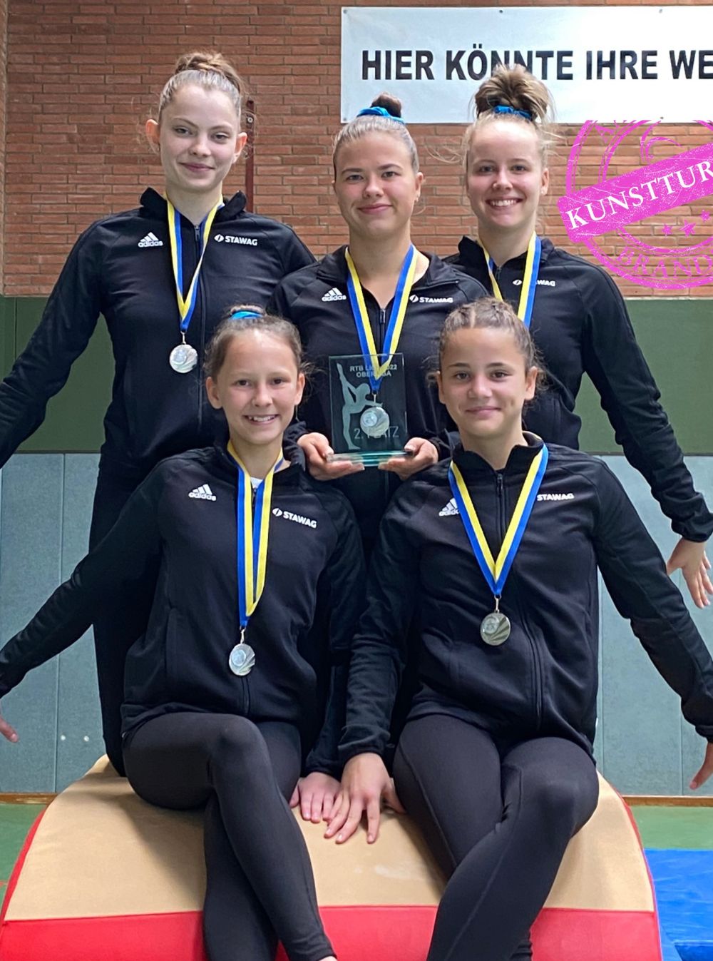 Tatsächlich forderte die diesjährige Oberligasaison unserer Mannschaft alles ab. Sportartenwechsel, Verletzungen, Auslandsaufenthalte, Terminprobleme, organisatorische Einschränkungen zwangen das Team ständig zu Neu- oder Umbesetzungen der Mannschaft oft in letzter Sekunde, die dann in dieser Besetzung erstmalig in der Oberliga antreten mussten. „Ein schwierigeres Jahr hatten wir noch nie!“, resümierten die Trainer. “Dass wir es trotzdem geschafft haben, ist der Stärke unseres Nachwuchses zu verdanken!“ Insgesamt 4 Turnerinnen aus unserer 2. Mannschaft sind z.T. aus dem Stand erstmals in der Oberliga angetreten und konnten eindrucksvoll zeigen, welche enormen Qualitäten sie haben: