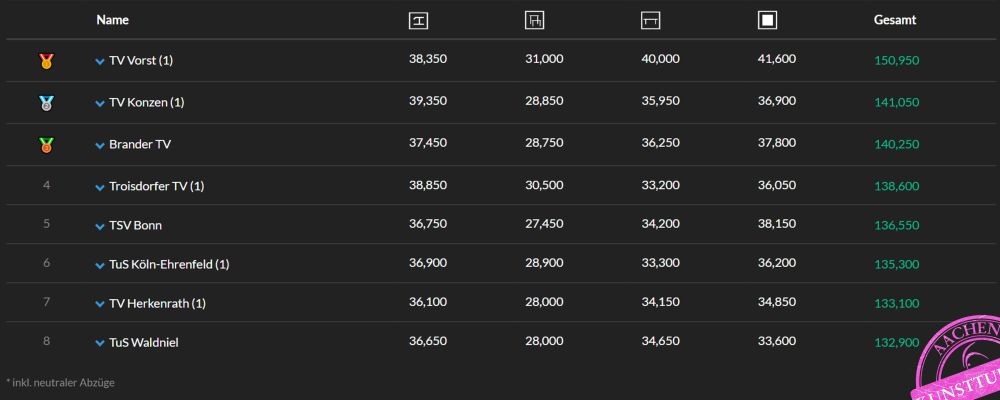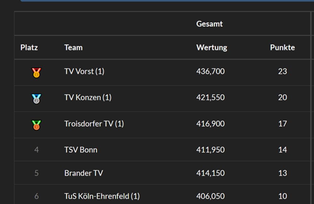 Tageswertung Finale NRW Liga 2023; www.turnwert.de