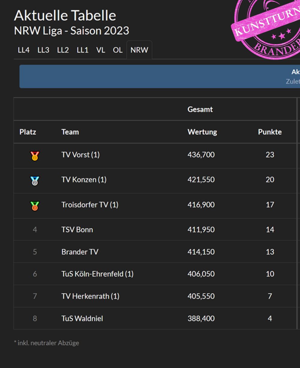 Abschlusstabelle NRW-Liga 2023; www.turnwert.de