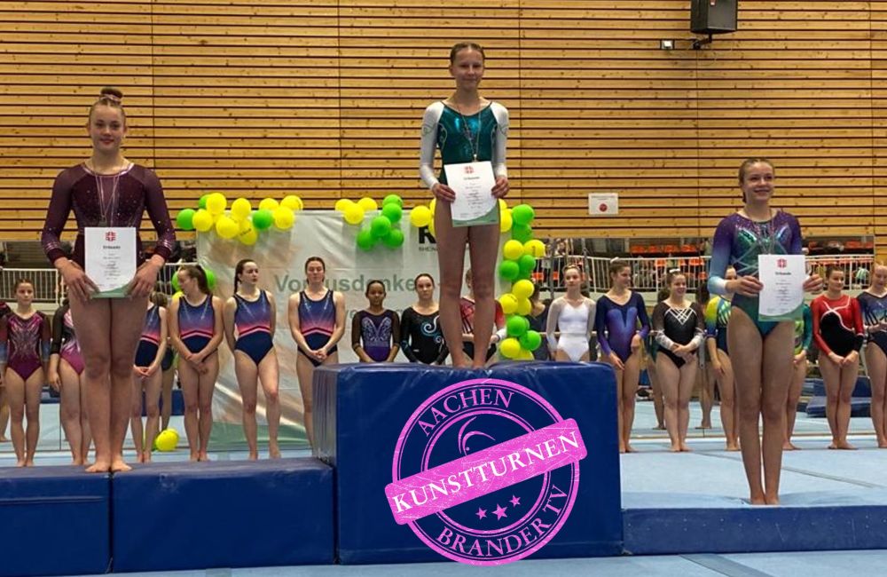 Die Stützpunktturnerinnen vom Brander TV zeigten tolle Leistungen beim Kräftemessen der Besten LK1-Turnerinnen im Rheinland. Die Krone setzte sich Emily Petrowski auf, die sich mit 50,50 Pkt. in der jüngsten Altersklasse 12/13 den Titel holte, Lena Stockem erkämpfte sich einen starken 4. Rang (AK 14/15), Giovanna Neves landete nach einem ‚gebrauchten‘ Tag auf Rang 14; in der Damenklasse (AK 18+) sicherte sich Finja Backhaus mit dem 7. Rang ein Top-Ten Ergebnis – und es wäre sogar noch mehr drin gewesen im außergewöhnlich starken Teilnehmerfeld.